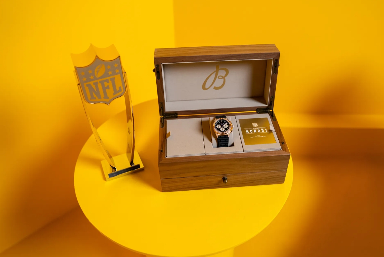 The Official Timepiece Partner of the NFL since 2025, Breitling has produced a plethora of NFL-themed watches within the Chronomat Automatic GMT, Endurance Pro, and Super Chronomat B01 collections thus far. For those lucky enough to win an NFL Honors award at last night’s ceremony in San Francisco, however, best fake Breitling watches have added two new ultra-exclusive editions to the lineup. Last night, nine lucky NFL Honors recipients each received a custom stainless steel Chronomat B01 42 chronograph set with nearly 200 diamonds, all of which were engraved with “NFL HONORS 2026” on the caseback alongside a printed NFL Honors shield. The rarest of the bunch naturally went to Los Angeles Rams QB Matthew Stafford, who took home a special 18K red gold version engraved with “2025 NFL MVP” alongside his MVP award.